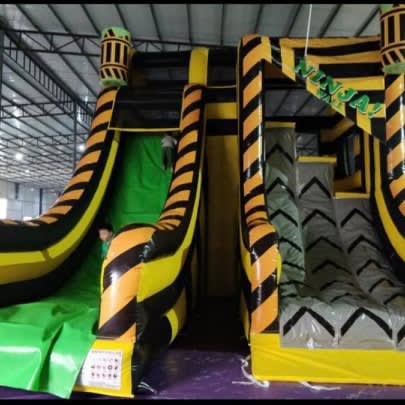 Become an Ninja Warrior and challenge your self with the highly competitive game the Ninja Wall! An inflatable wall with 3 different deck heights to make it suitable for most ages. Take many attempts to run up the wall and once at the top it’s a left turn to slide down back to the start. Make it fun Or use it as a competitive challenge with you and a component can you get the top first?