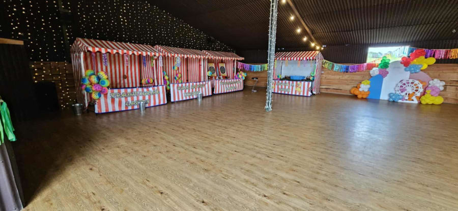 The traditional fun fair red and white stripe stalls really stand out adding the charm. How about adding Candy Floss Stall for that perfect traditional sweet treat. We also have bespoke made to match attractions to fit in with our traditional Funfair Games. Our Childrens Bungee Trampolines , large Inflatable Helter Skelter Slide High Striker / Test Your Strength and Funfair Axe Throw Game all makes to be the perfect carnival / Circus theme event all traditionally designed.