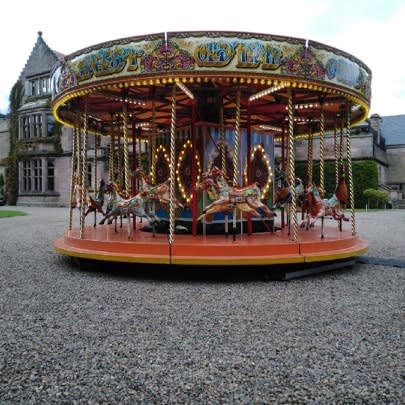 Traditional Children's Small Golden Horse Carousel for hire for all events throughout the UK. With bases is London and Cambridge we offer a nationwide event service