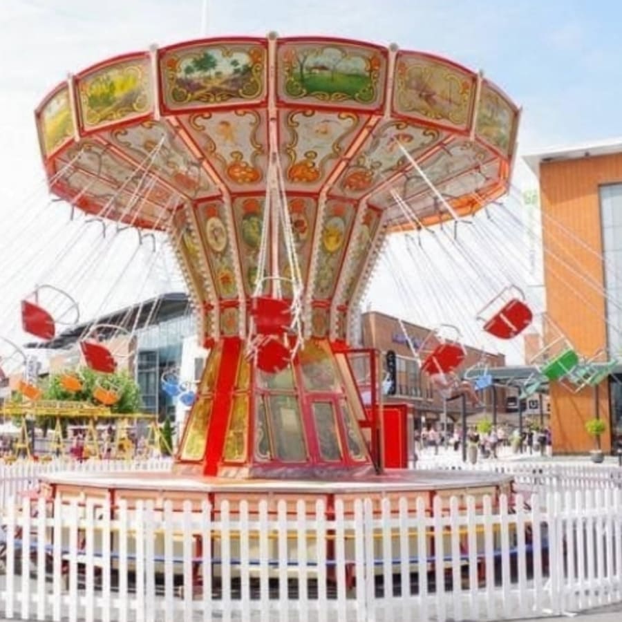 Traditionally designed and themed to give you a sense of nostalgia from funfairs from past times. This grand funfair ride is deffinatly a show stopper.Loved by Adults and Children alike. Looks wonderful alongside our Ferris wheel Hire Helter Skelter and Traditional Carousel / Gallopers , Take a trip down memory lane with this spectacular ride.
