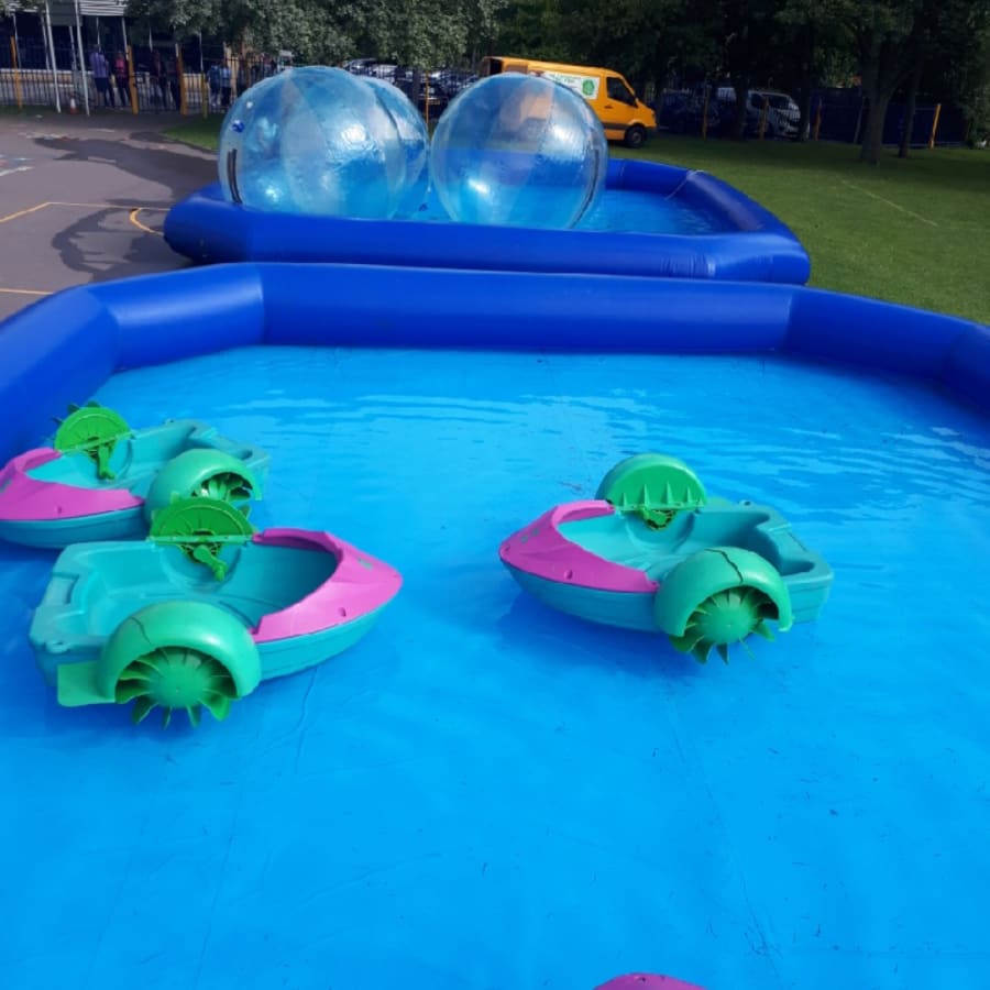 Let the kids be independent and drive their very own boat! A little more challenging then our Bumper Boats Hire these are not battery operated like those these are all down to a little elbow Grease ! great activity for the children by using there arms they make the wheels turn so they can drive there way around the pool, completely safe and the children will stay nice and dry. supervised by a fully trained team you can rest assured we will bring a safe and professional service. Children love these and can be driven by children from the ages of 3+ we have all the relevant risk assessments tests and safety procedures carried out and hold a 10 million public liability cover insurance that we are happy to email to you Contact Us.