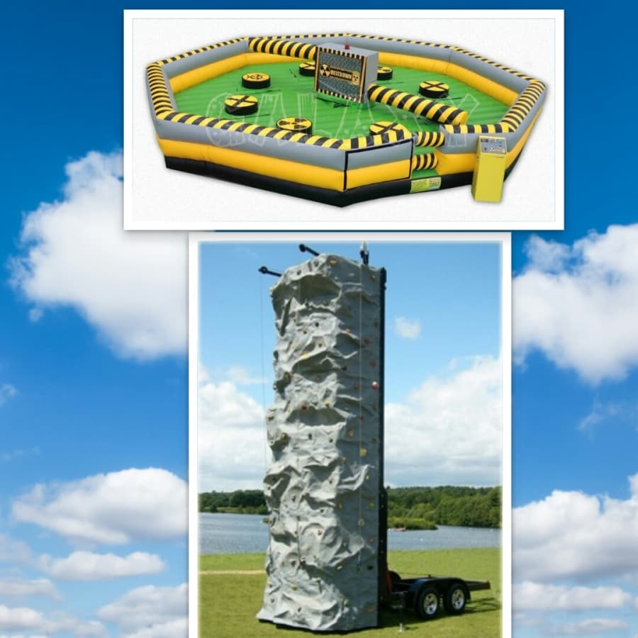 The very best and most popular attraction for our children's active experiences. Holds 8 people with each individual having there own podium the aim of the game is to be the last child standing, Teachers can join in to and challenge the student's to this highly competitive and active game, A hugely entertaining attraction for both challengers and observers With two sweepers rotating towards you you have to duck or jump but whatever you do keep standing on your podium. Whoever is the last one standing is the winner. Read more about this attraction here | Total Wipe Out Meltdown
